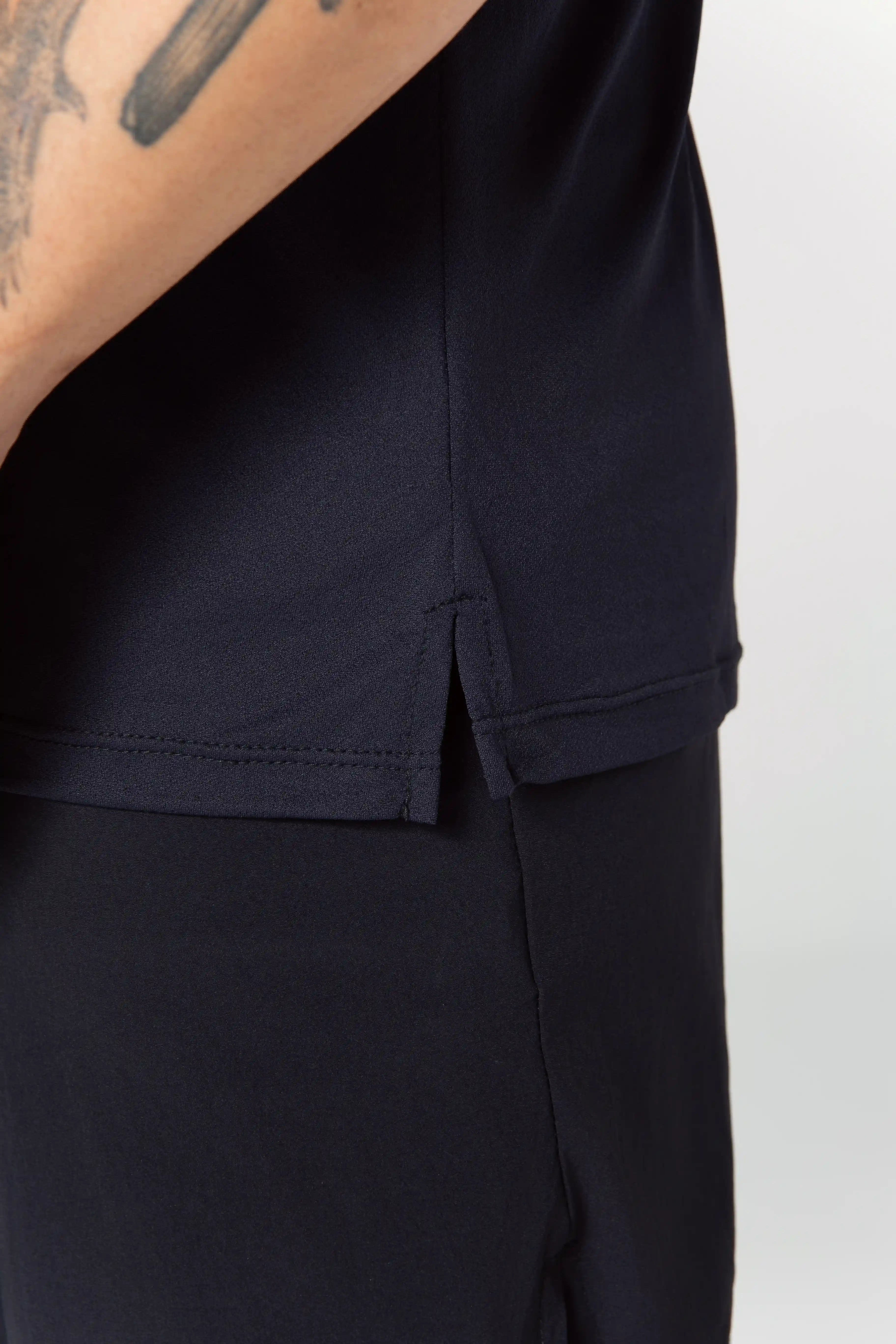 Tudo isso em um tecido ultraleve (110 g), de secagem rápida, que evita picos de calor e suor excessivo.