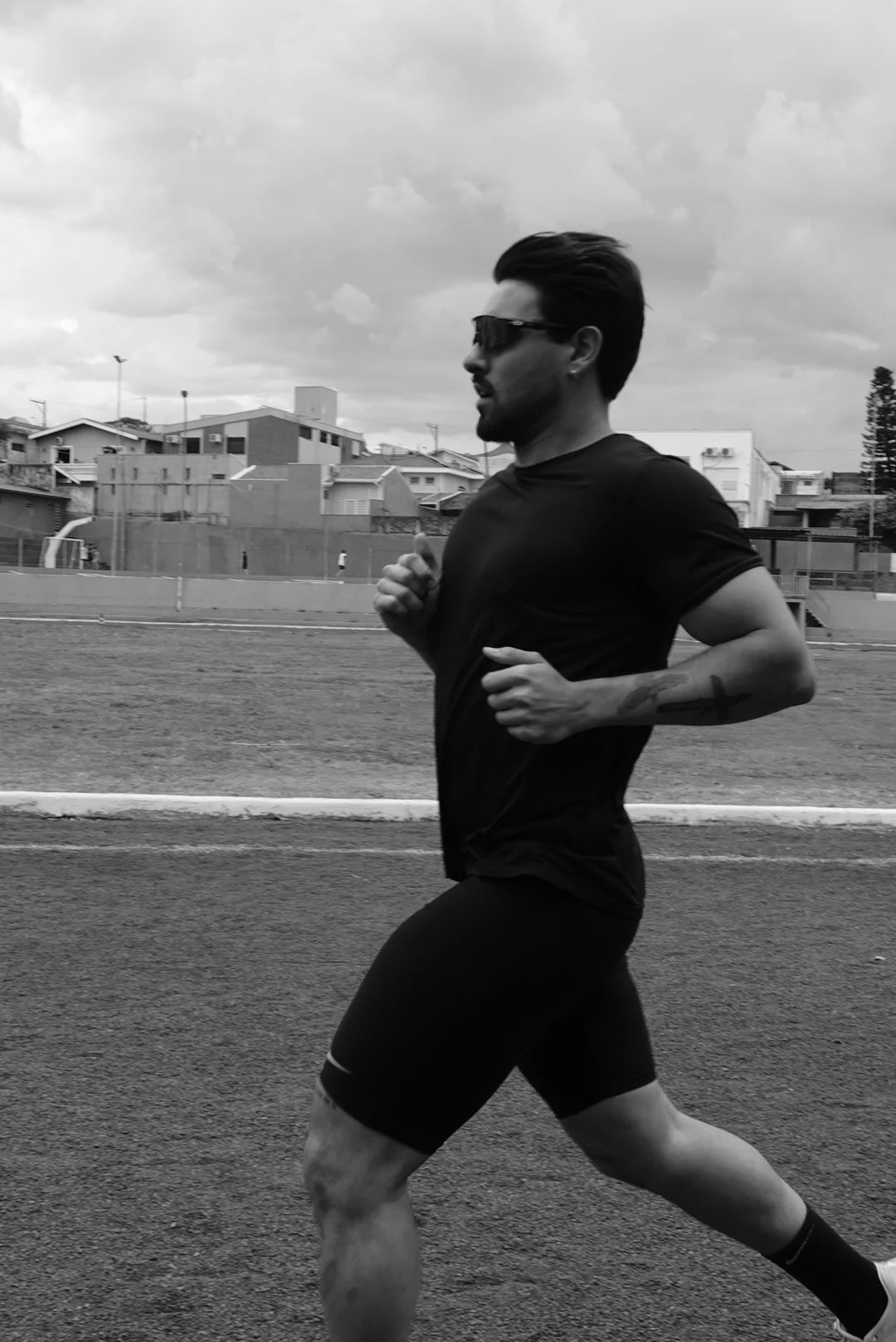 Tudo isso em um tecido ultraleve (110 g), de secagem rápida, que evita picos de calor e suor excessivo.